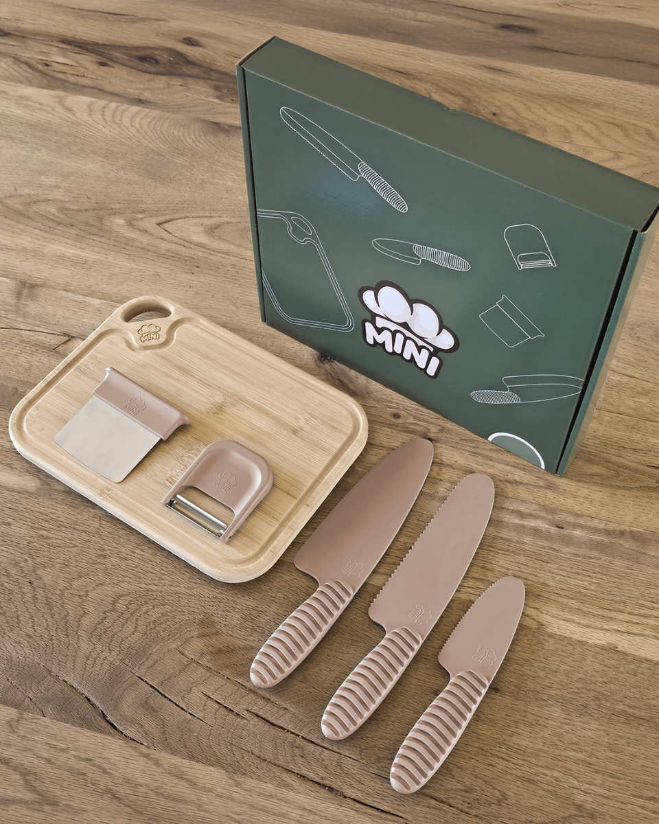 Das MINI Family Küchenset für Kinder ist mehr als nur ein Set aus Messer, Sparschäler, Hacker und Schneidebrett. Es ist ein Werkzeug, das dein Kind befähigt, selbst aktiv zu werden, Verantwortung zu übernehmen und dabei Freude am Entdecken zu haben.