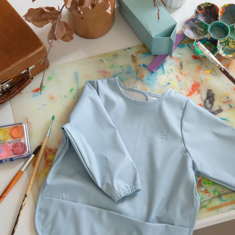 Diese zuckersüßen Lätzchen mit Ärmeln lassen sich beim Füttern sehr leicht anlegen. Das Lätzchen wird im Nacken mithilfe eines Klettverschlusses geschlossen, sodass du es an den Hals deines Babys anpassen kannst. Es verfügt vorne über eine praktische kleine Tasche, die das Essen auffängt und hilft dem Kind dabei, selbstständiger zu essen. Das Sebra Lätzchen mit Ärmeln ist 41 cm lang und bedeckt die Kleidung besser als ein normales Lätzchen ohne Ärmel. Es kann auch zum Schutz der Kleidung verwendet werden, wenn das Kind in der Küche hilft oder sich mit Papier und Pinsel kreativ betätigt.  Das wasserabweisende Material des Lätzchens lässt sich leicht mit einem feuchten Tuch reinigen und trocknet schnell, wenn es bei 30 °C in der Maschine gewaschen wird. Es eignet sich hervorragend als praktisches Geschenk für ein Kind, das gerade dabei ist zu lernen, selbstständig zu essen.
