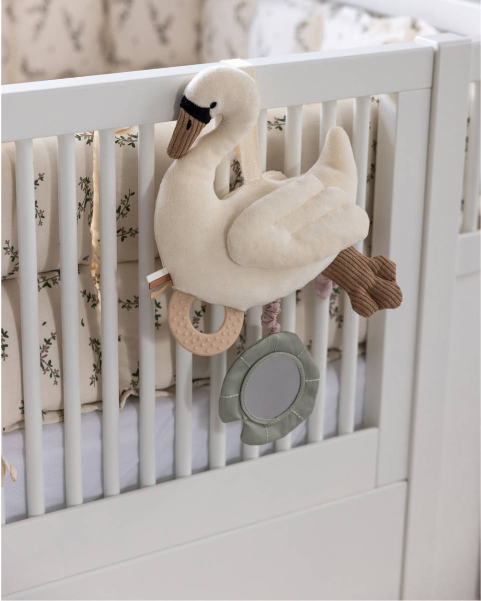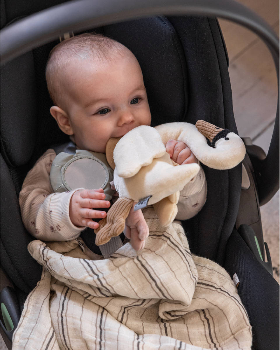 Mach jede Fahrt im Kinderwagen oder Autositz zu einem kleinen Abenteuer! Das Sebra Aktivitätsspielzeug zum Aufhängen ist in zwei zauberhaften Designs erhältlich: als eleganter Schwan aus weichem Velours oder als farbenfrohe, rasselnde Libelle. Beide Modelle wurden in Dänemark mit viel Liebe zum Detail entworfen, um die Sinne deines Babys vom ersten Tag an spielerisch zu fördern.