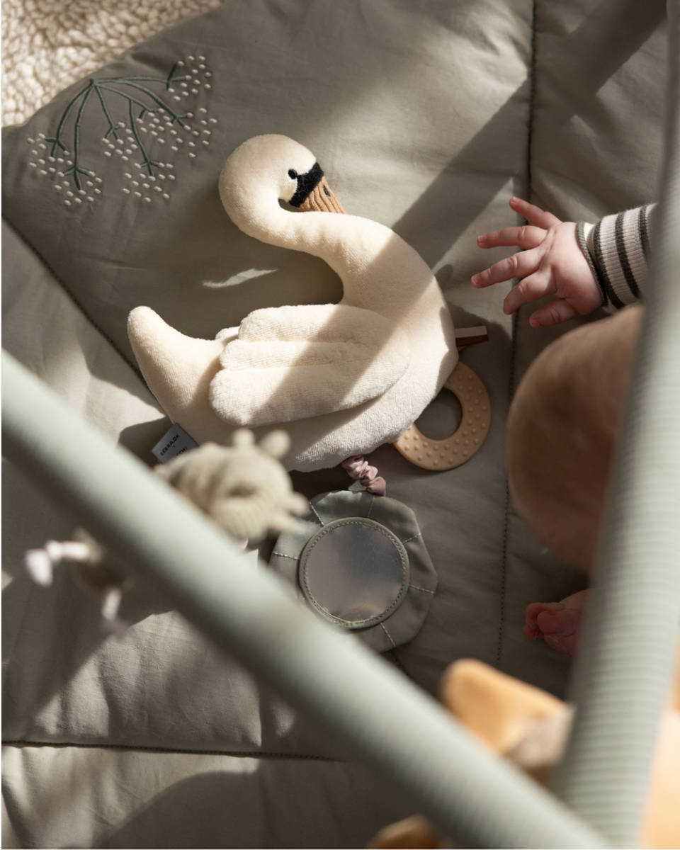 Egal für welches Modell du dich entscheidest, dein Baby wird es lieben, die verschiedenen Funktionen zu erkunden. Der Schwan begeistert mit knisternden Flügeln, verschiedenen Fühlelementen und einem versteckten Spiegel im Blatt-Detail. Die Libelle hingegen fördert mit ihren rasselnden Geräuschen und glitzernden Stoffen gezielt das Gehör und die visuelle Wahrnehmung. Dank des praktischen Klettverschlusses kannst du das Spielzeug überall dort befestigen, wo dein Baby es gerade braucht.