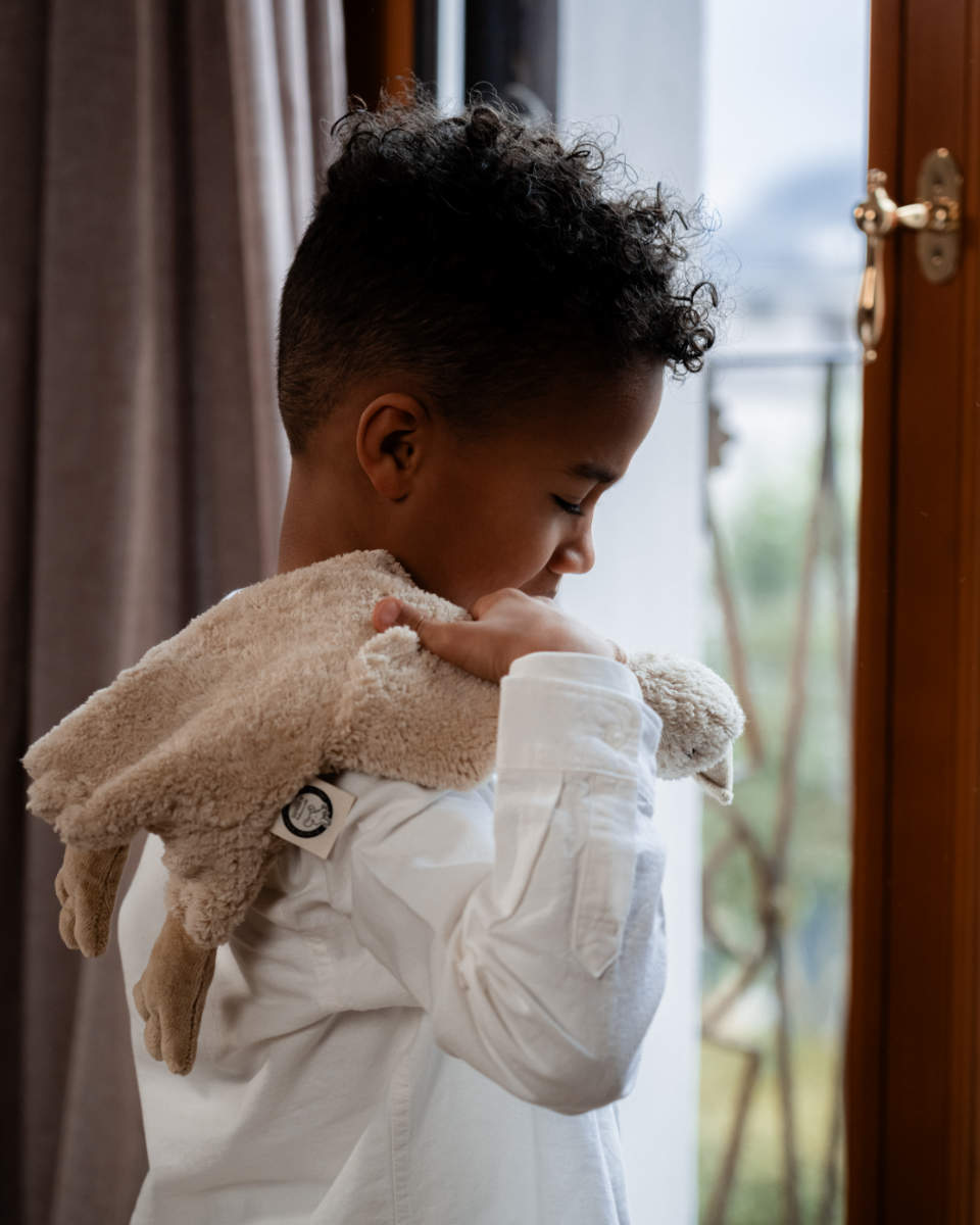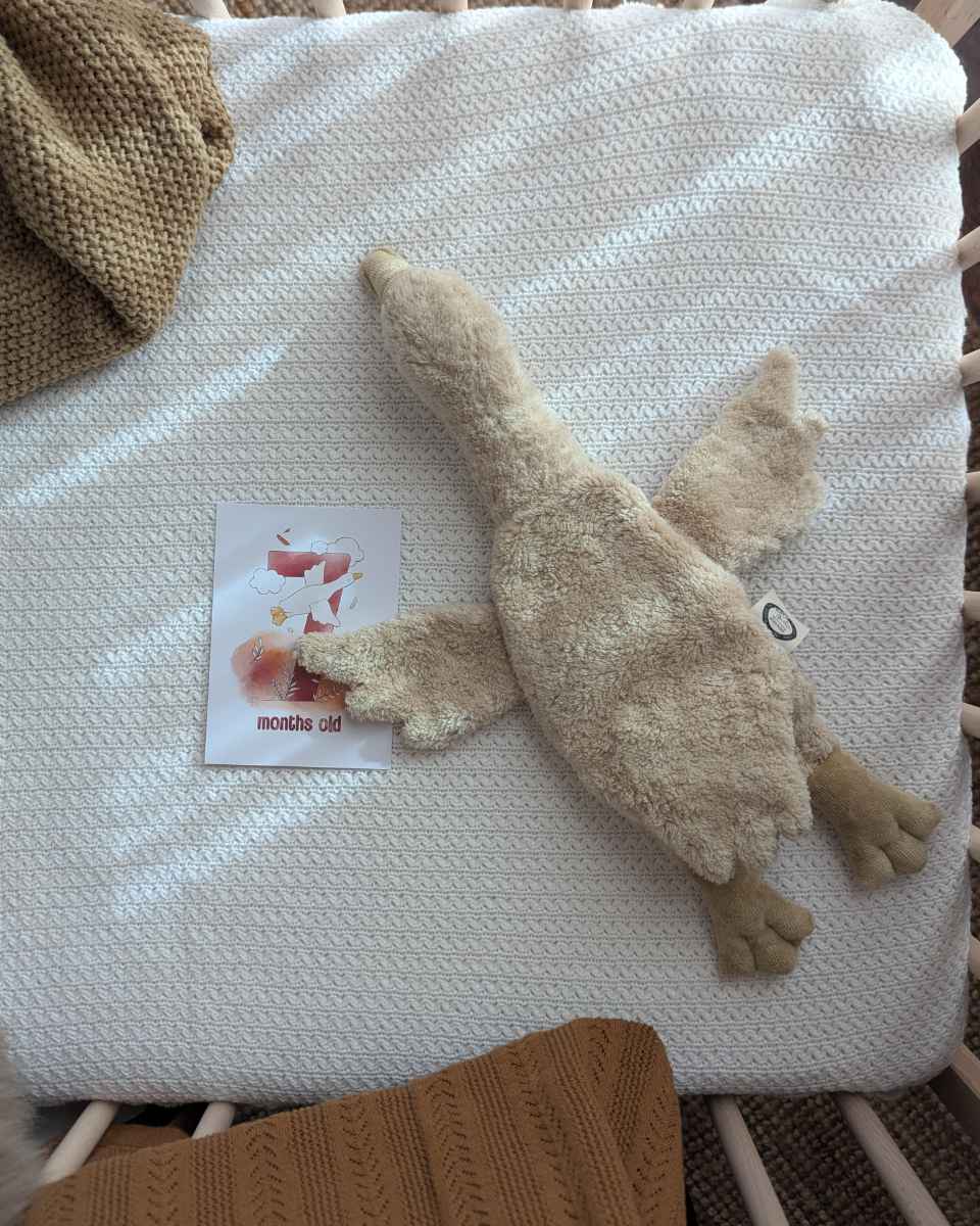Gefertigt aus GOTS-zertifizierter Bio-Baumwolle und gefüllt mit Schafschurwolle sowie einem herausnehmbaren Traubenkernkissen, steht die Gans für höchste Qualität und Hautfreundlichkeit. Alle Materialien stammen aus Deutschland und Europa und werden in Handarbeit verarbeitet – für ein Produkt, das man mit gutem Gewissen weitergibt.