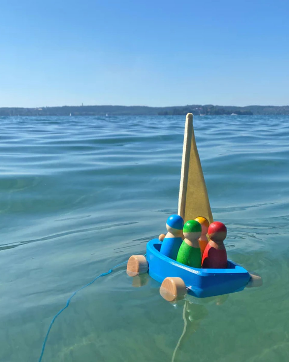 "Grimm’s Nachzieh-Strandsegler aus Holz mit Figuren"