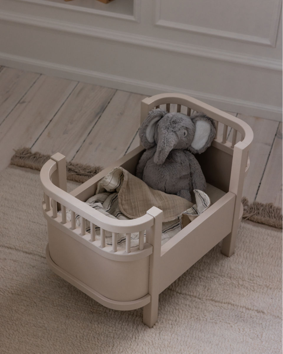 Das Puppenbett ist stabil und zum Spielen für Kinder ab 1 Jahr geeignet.
