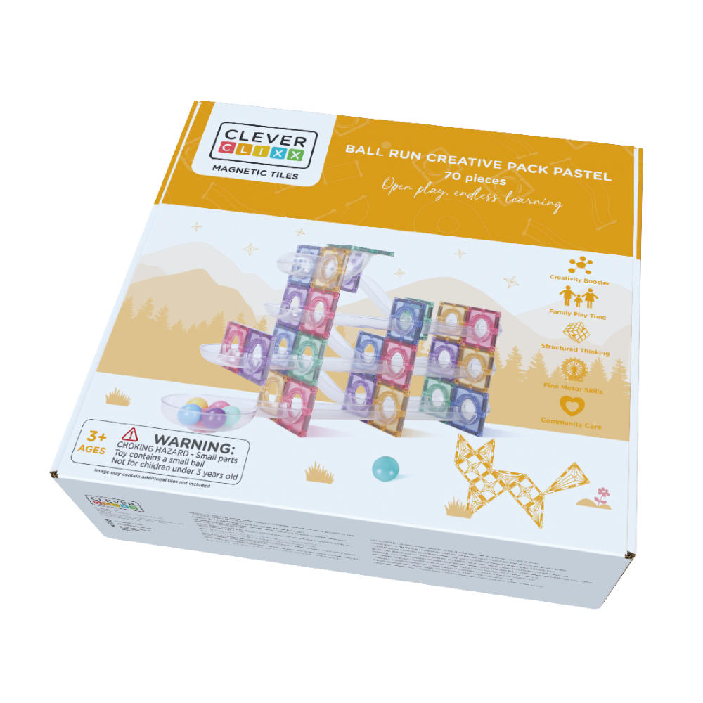 Die Cleverclixx Kugelbahn Pastell – 70 Teile Magnetbausteine ist ein ideales Starterset für alle kleinen Baumeister*innen. Sie verbindet Spaß, Kreativität und Lernen auf spielerische Weise. Ob alleine, mit Geschwistern oder mit der ganzen Familie – dieses Set bringt Freude, fördert wichtige Fähigkeiten und ist der perfekte Einstieg in die Welt der magnetischen Kugelbahnen.