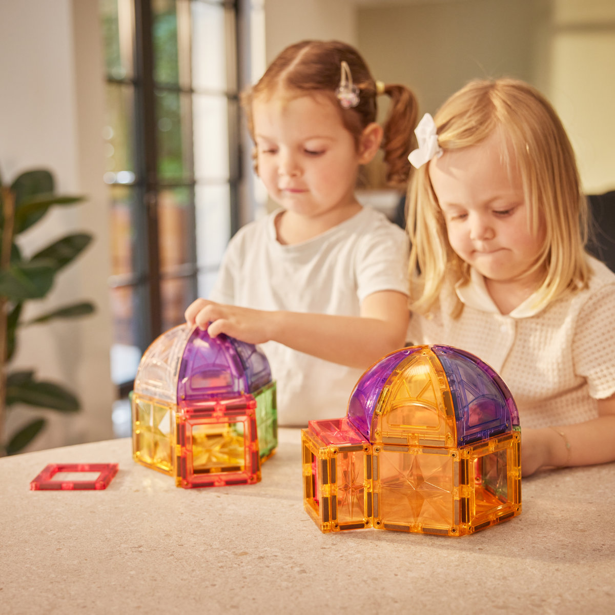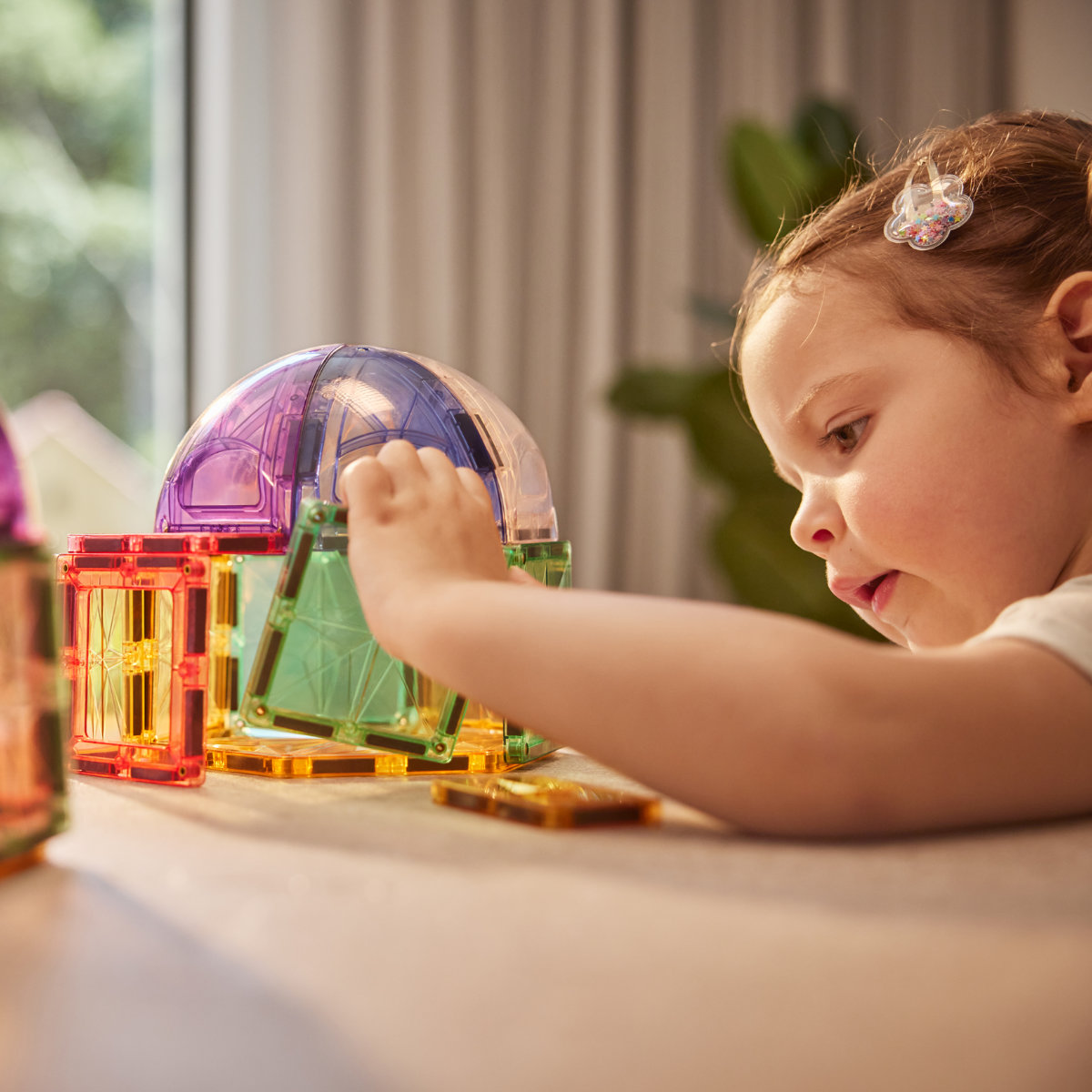 Die Magnetbausteine bestehen aus hochwertigem MABS-Kunststoff, sind BPA-frei und mit starken Magneten ausgestattet. Glatte Kanten und robuste Verarbeitung sorgen für ein sicheres Spielerlebnis. Geeignet für Kinder ab 3 Jahren.