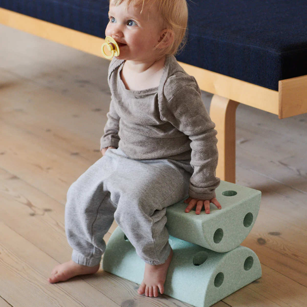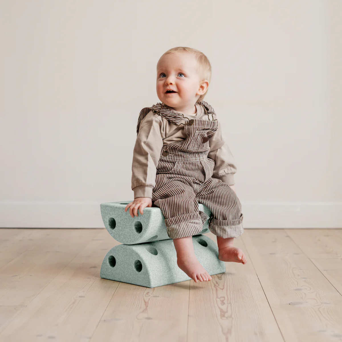 Der Modu Roller bietet Motorikspiele für jedes Alter. Führe Bauchübungen mit deinem Baby durch, stärke die Körpermitte durch Vor- und Rückwärtsrollen und lass ältere Kinder aufrecht sitzen, um ihr Gleichgewicht zu üben. Kombiniere die Blöcke, um "auf dem Seil zu balancieren" und lustige Hindernisparcours zu bauen.