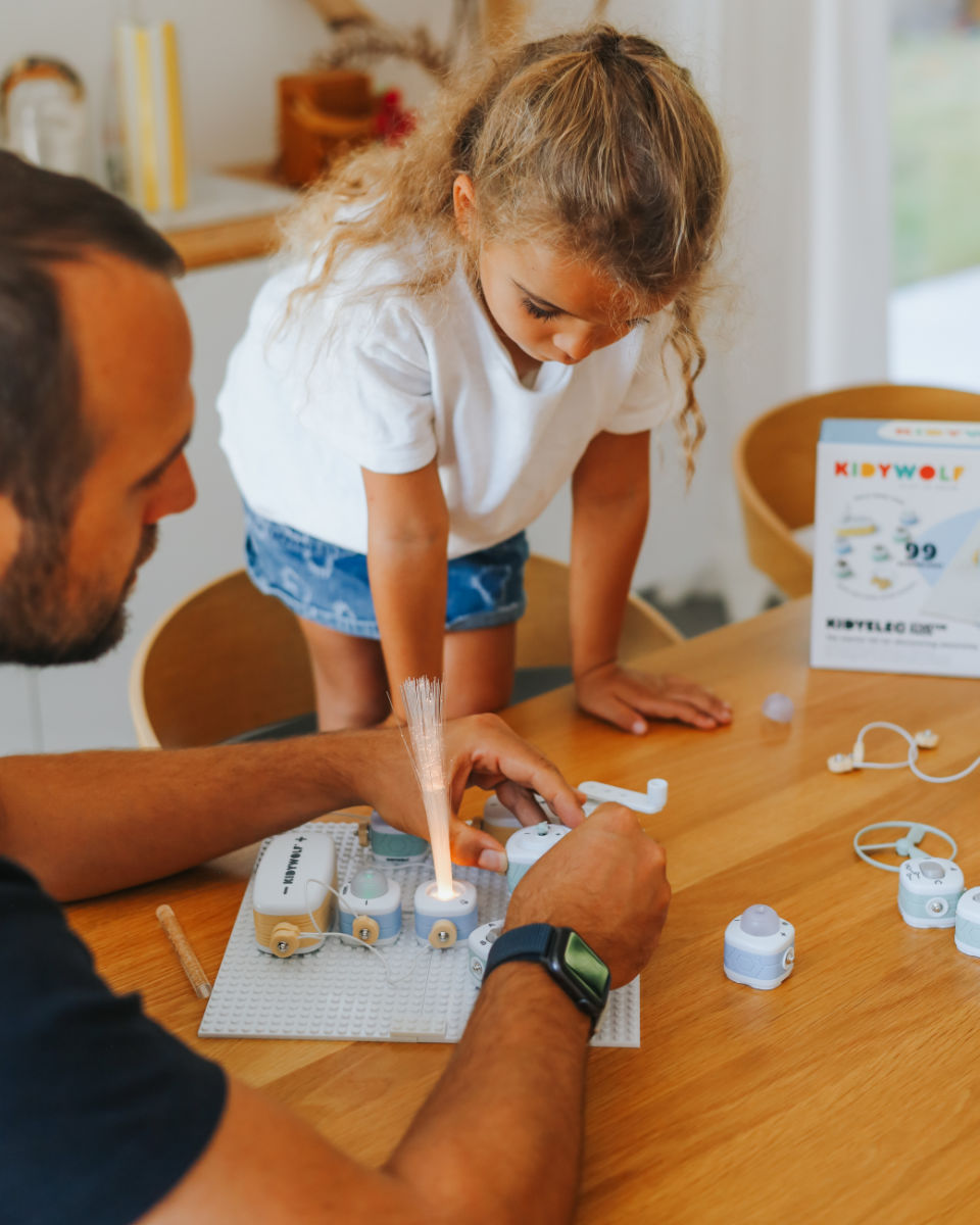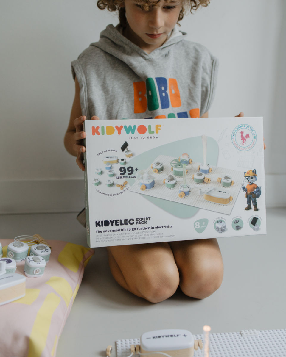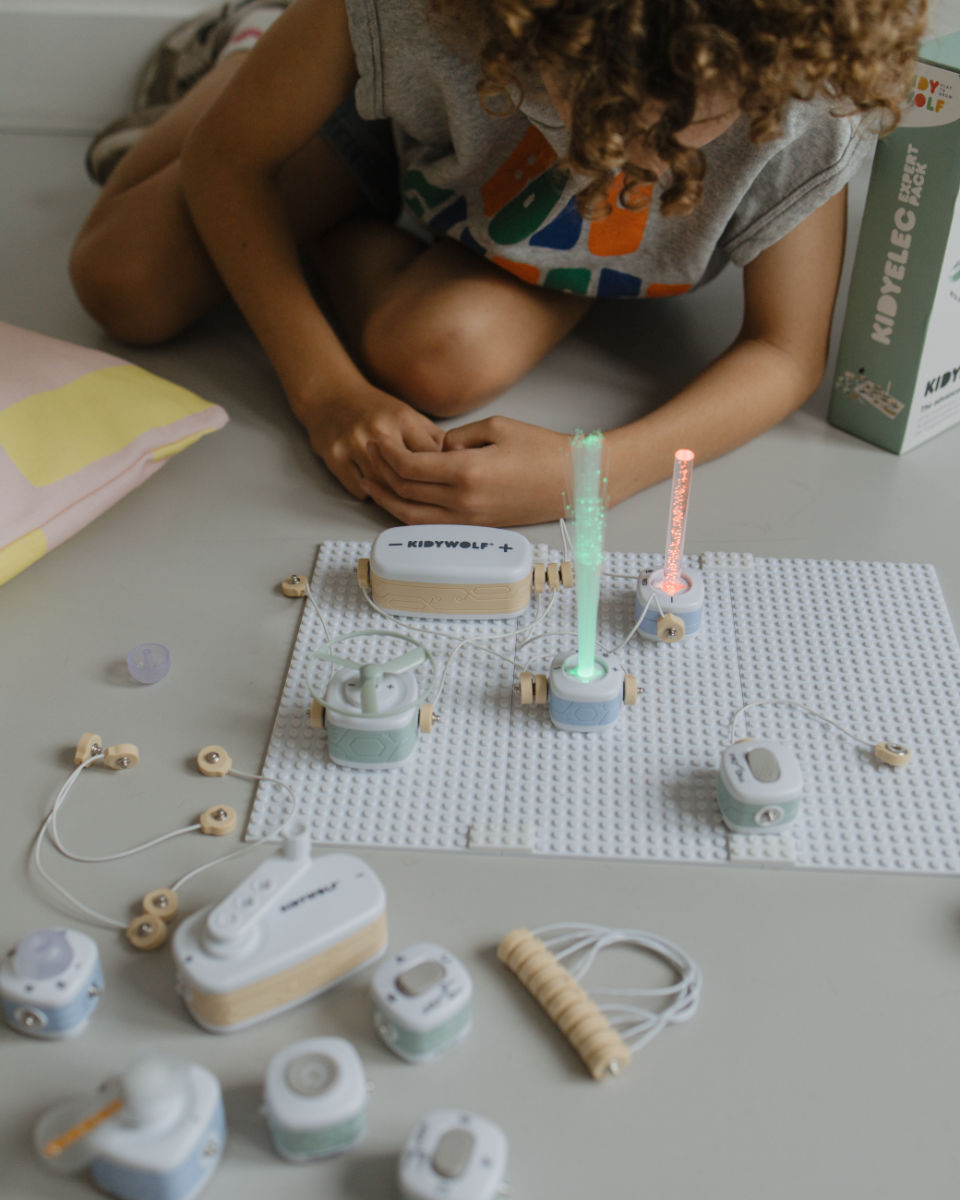 Mit dem Kidywolf Kidyelec-Pro Expert Set wird Elektrizität zum spannenden Abenteuer. Kinder ab 8 Jahren bauen ihre eigenen Stromkreise, verbinden Bausteine und erleben, wie Lichter leuchten oder Propeller sich drehen. So wird natürliche Neugier in Wissen verwandelt – praxisnah, spannend und voller Spaß.