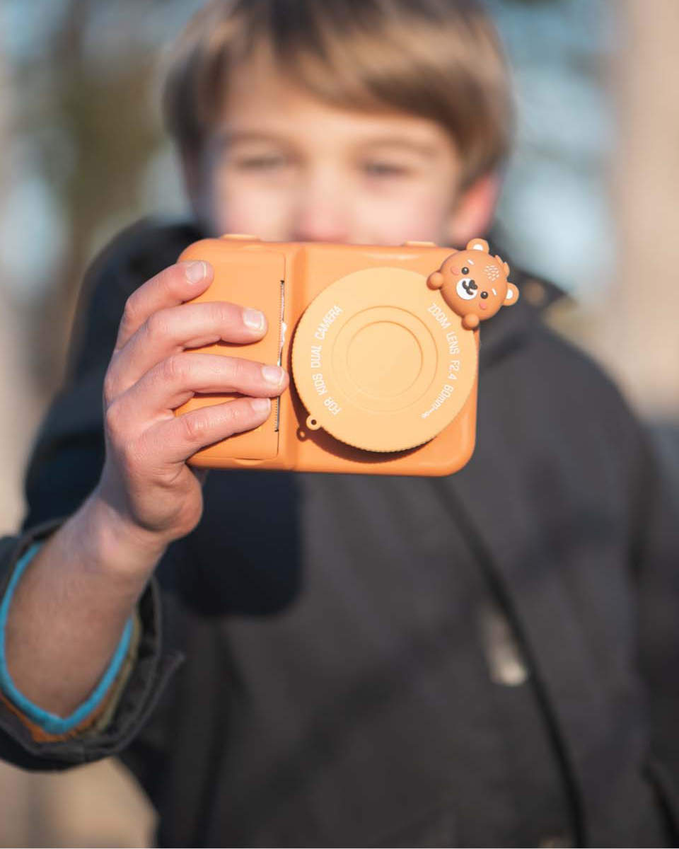Über 20 lustige Rahmen, Sticker und Cartoon-Elemente sorgen für jede Menge Fantasie. Die Kamera ist in vier Designs erhältlich: Unicorn, Fox, Bear und Dino Green.